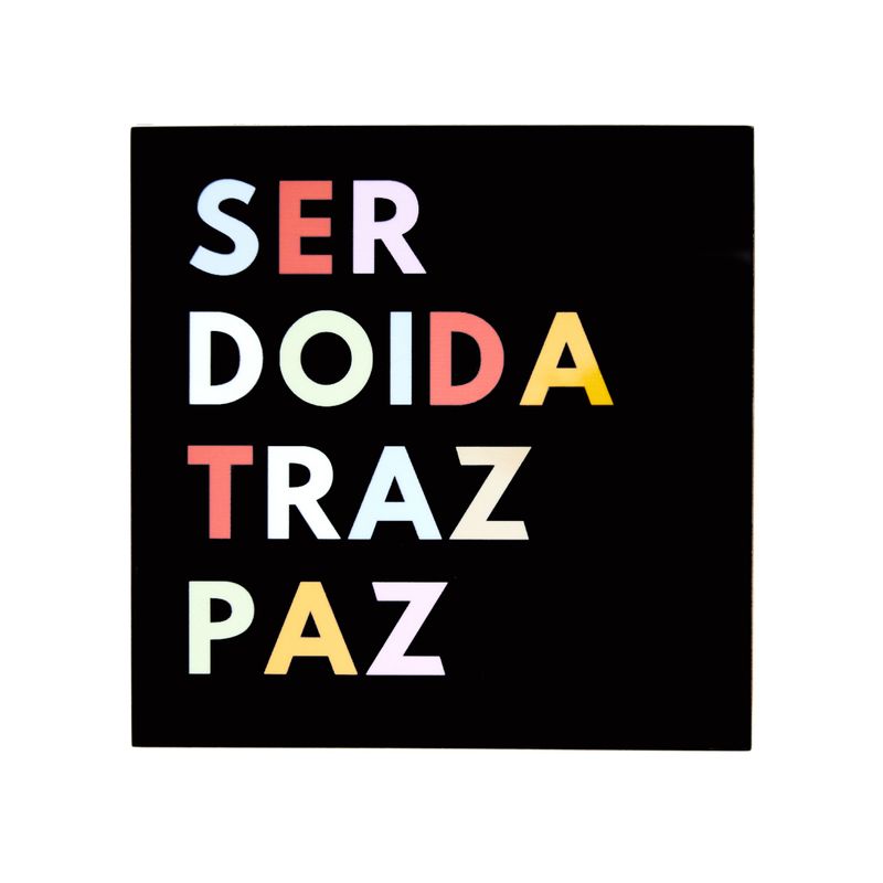 O Azulejo Decorativo Ser Doida Traz Paz combina humor, cor e atitude em uma peça cheia de personalidade. Com fundo preto e letras coloridas, ele é perfeito para quem gosta de decoração com mensagem e estilo.