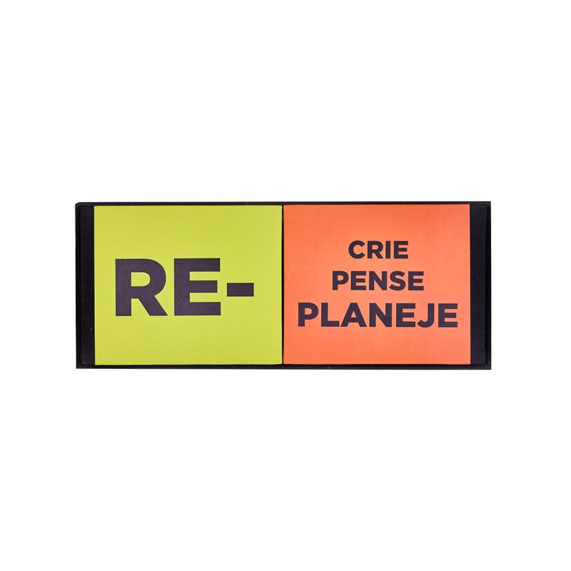 O Bloco Planejamento Duas Tampas Repense, possui dois blocos, caneta de bambu, post-it e vem com espaço para anotar seus planos e anotações e outro para suas ações.