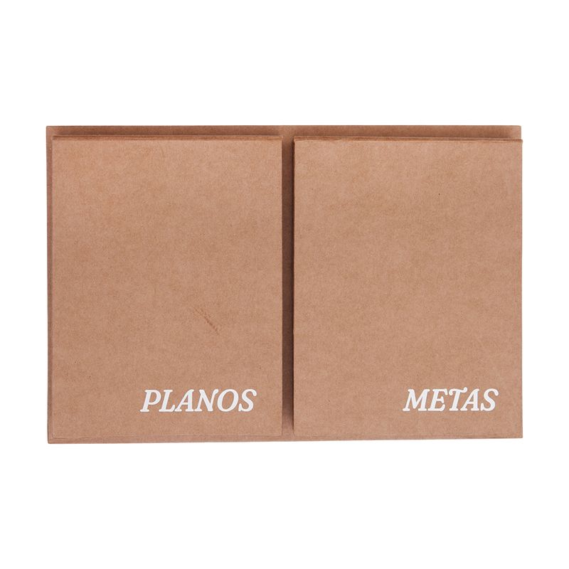 Com duas tampas separadas - PLANOS e METAS - ele incentiva uma rotina mais leve, produtiva e intencional, ajudando você a enxergar o que deseja realizar e acompanhar o caminho até lá.