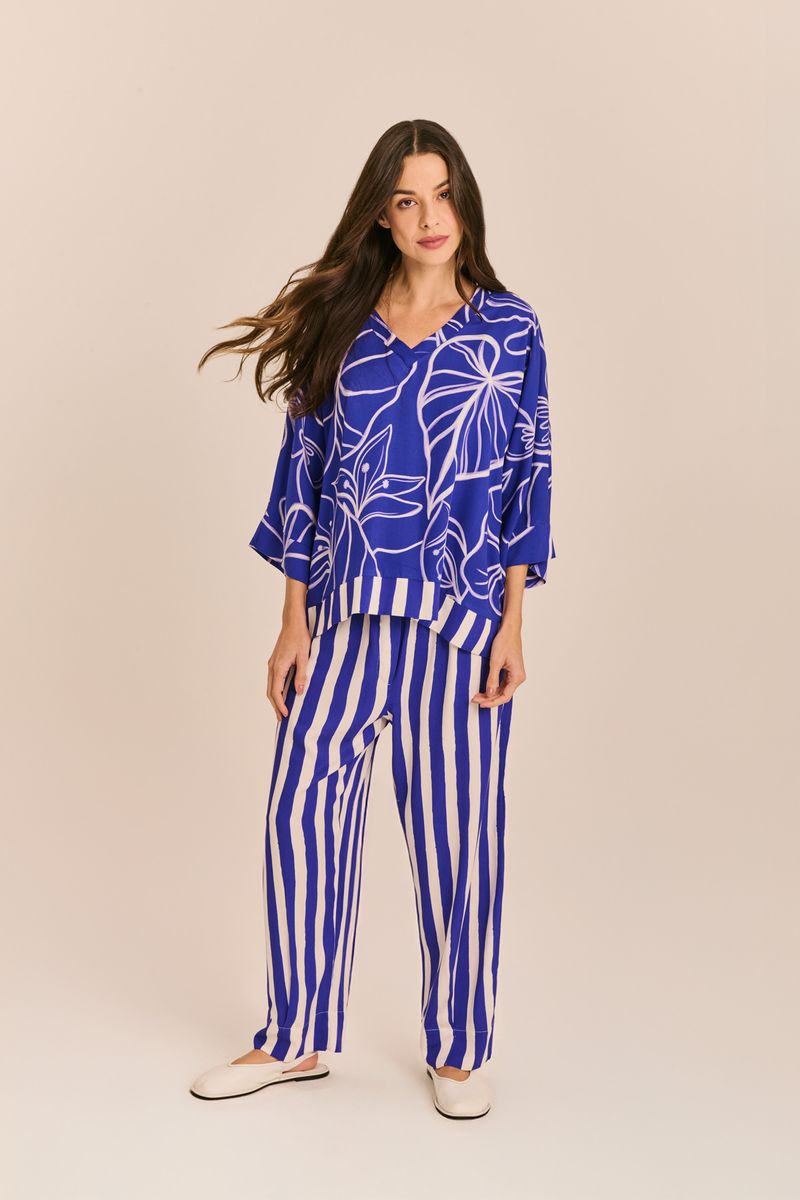 Confeccionada em 100% viscose, essa blusa une leveza e sofisticação. Com mix de estampas, modelagem confortável, mangas 3/4 e decote em V. Ela valoriza o colo e proporciona caimento solto e elegante.