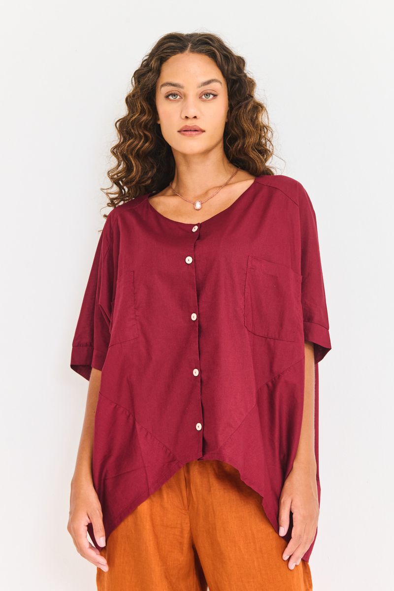 Essa blusa confeccionada em 100% algodão combina conforto e estilo com sua modelagem ampla e mangas curtas. O fechamento frontal por botões adiciona um toque moderno, enquanto as costuras em recorte valorizam o caimento da peça. Ideal para compor looks casuais com personalidade e frescor.