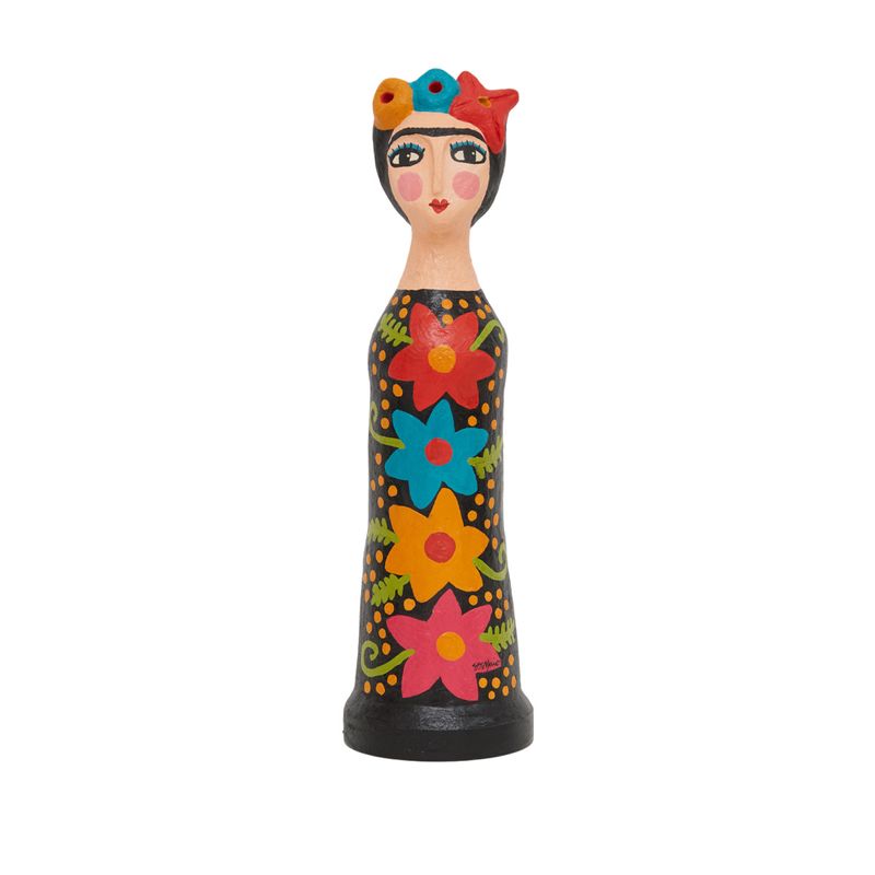 A Boneca de Papel Machê Frida é uma peça artesanal encantadora que celebra a força e a expressão artística. Feita à mão com técnica tradicional de papel machê, cada detalhe reflete o cuidado e a originalidade do trabalho manual. Suas cores vibrantes e flores pintadas trazem vida e personalidade à decoração, tornando-a um destaque em qualquer ambiente.