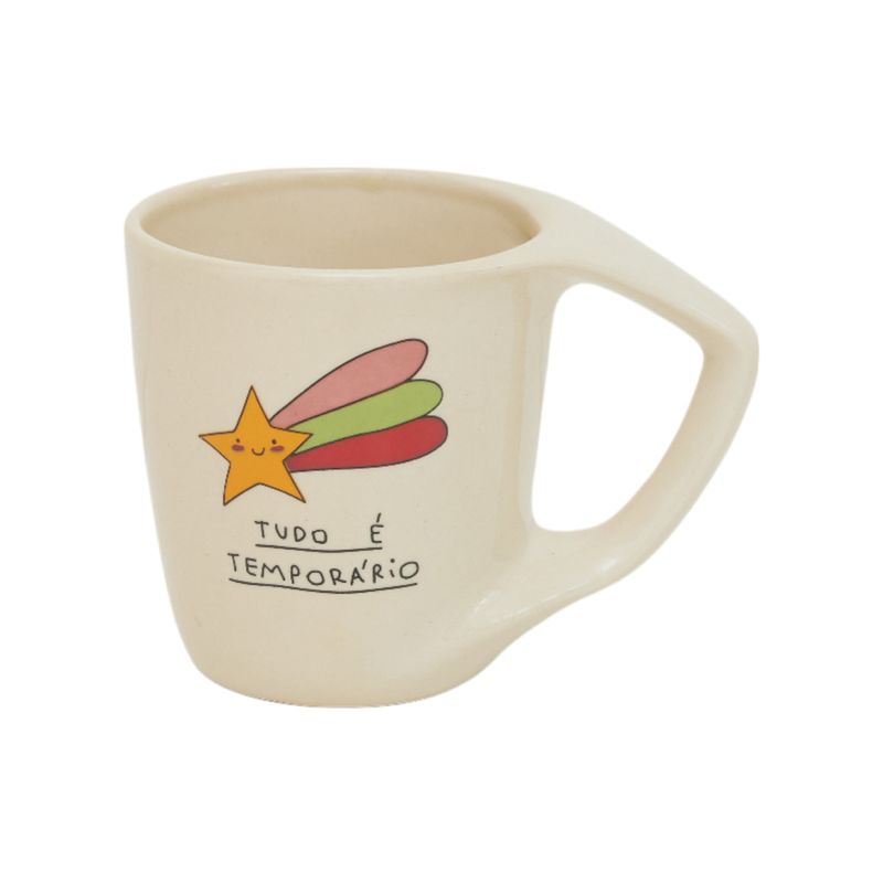 Caneca em cerâmica com frases, formato regular, design sofisticado e funcional para o consumo de bebidas quentes e frias, com capacidade de 380 ml.