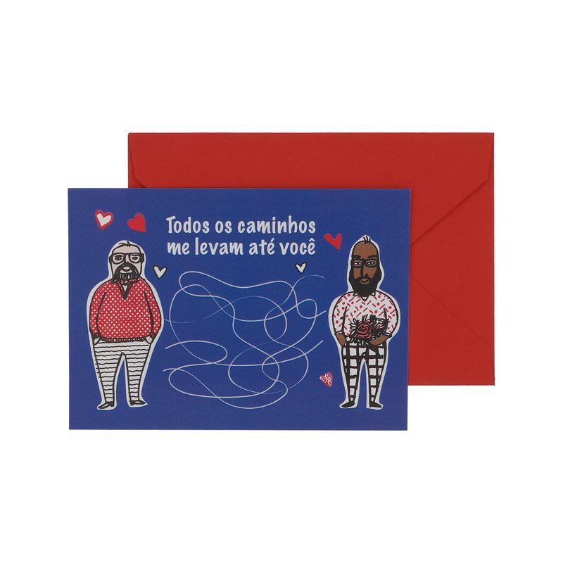O cartão "Todos os caminhos me levam até você" é uma opção super fofa para você que quer surpreender seu companheiro neste dia dos Namorados. É sempre especial receber um cartão escrito à mão da pessoa que amamos. Complete seu presente! Produzido em Papel Duo Design 250g e já vem com envelope. Dimernsões: L: 7,5 cm x A: 10,5 cm