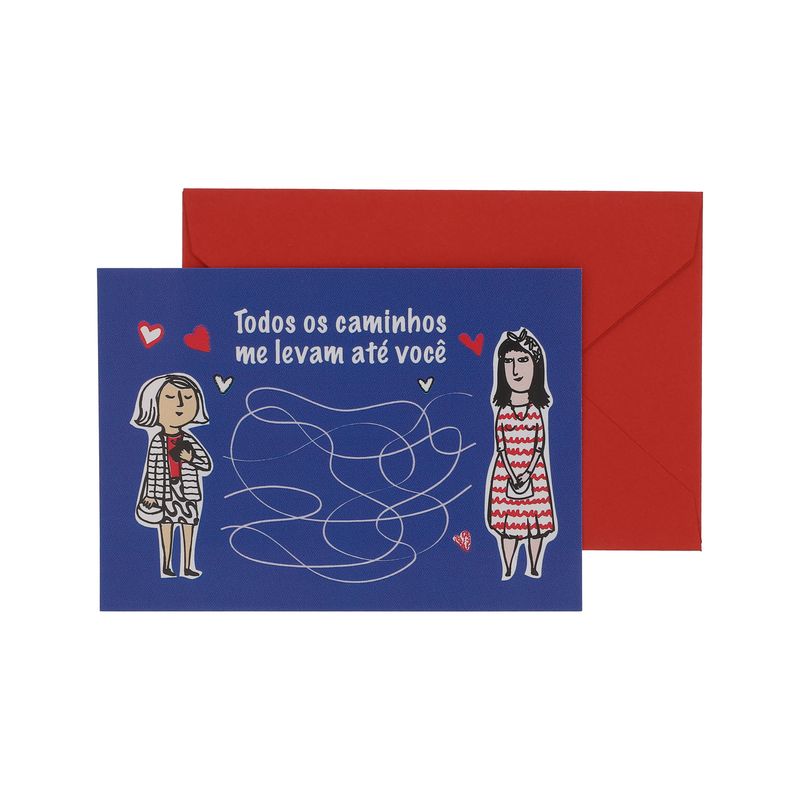 O cartão "Todos os caminhos me levam até você" é uma opção super fofa para você que quer surpreender seu companheiro neste dia dos Namorados. É sempre especial receber um cartão escrito à mão da pessoa que amamos. Complete seu presente! Produzido em Papel Duo Design 250g e já vem com envelope. Dimernsões: L: 7,5 cm x A: 10,5 cm