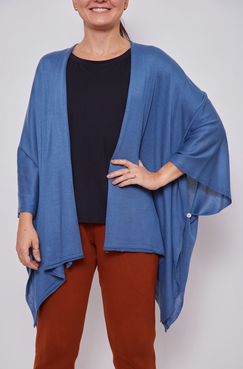 O Casaco Malha Tricot Sobreposição Botão Lateral é um acessório prático para o dia a dia. Ideal para carregar na bolsa e se proteger do ar-condicionado em ambientes fechados, adicionando charme e sofisticação ao look. Uma peça coringa no guarda-roupa, perfeita para quem busca conforto e elegância com um toque fashion.