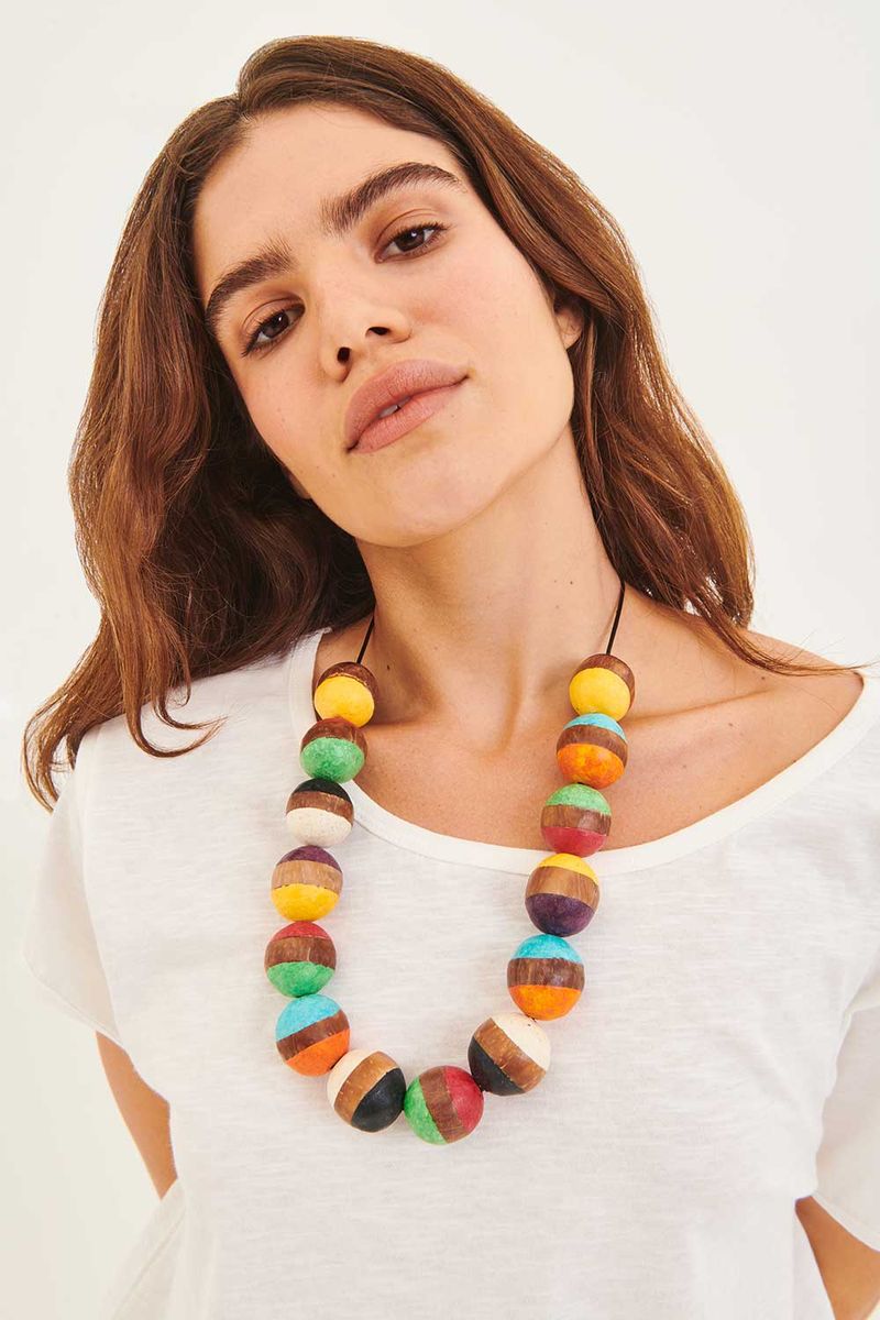 Colar Bolotas em Coco e Couro COLORIDA