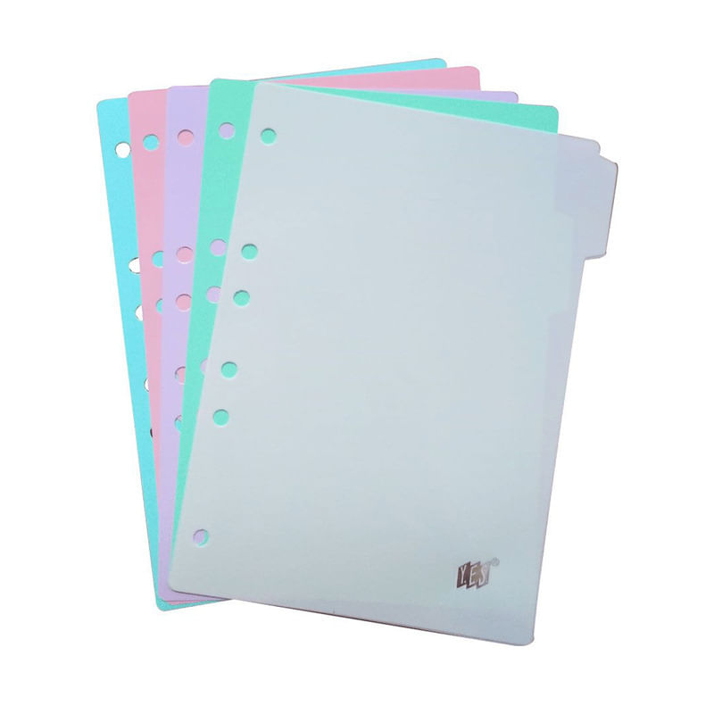 A Divisória para Fichário B5 foi desenvolvida para tornar as atividades do dia a dia mais práticas. Contém 5 divisórias em material translúcido e resistente para cadernos argolados ou fichários com cores em tons pastel para ajudar na organização e separação de matérias. Dimensões: L: 18,3 cm x A: 24,5 cm