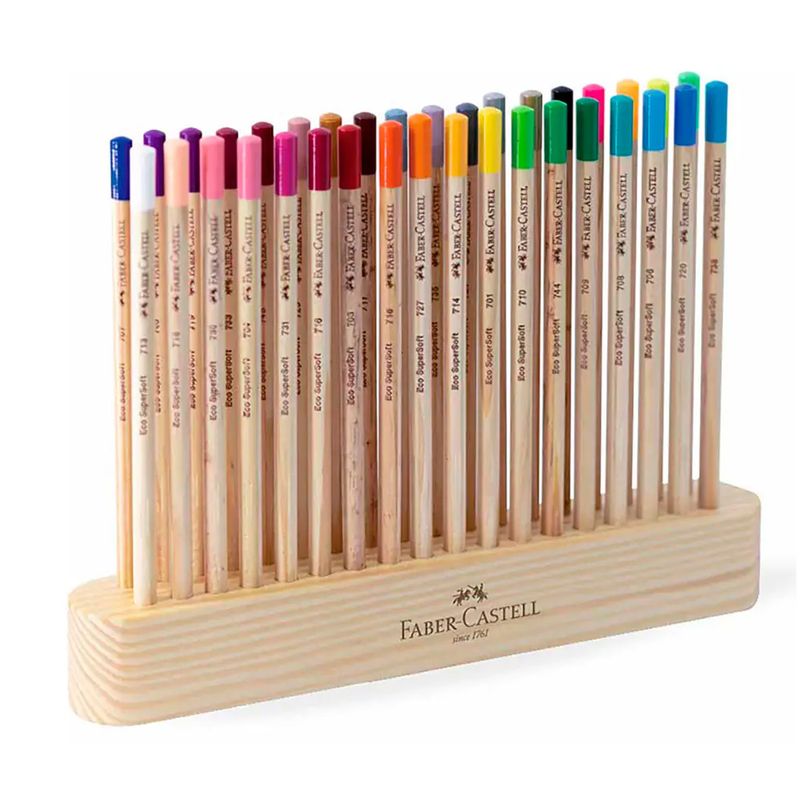 Organização eficiente: acompanha uma base de madeira para uma melhor organização dos lápis, facilitando o armazenamento e exposição do produto