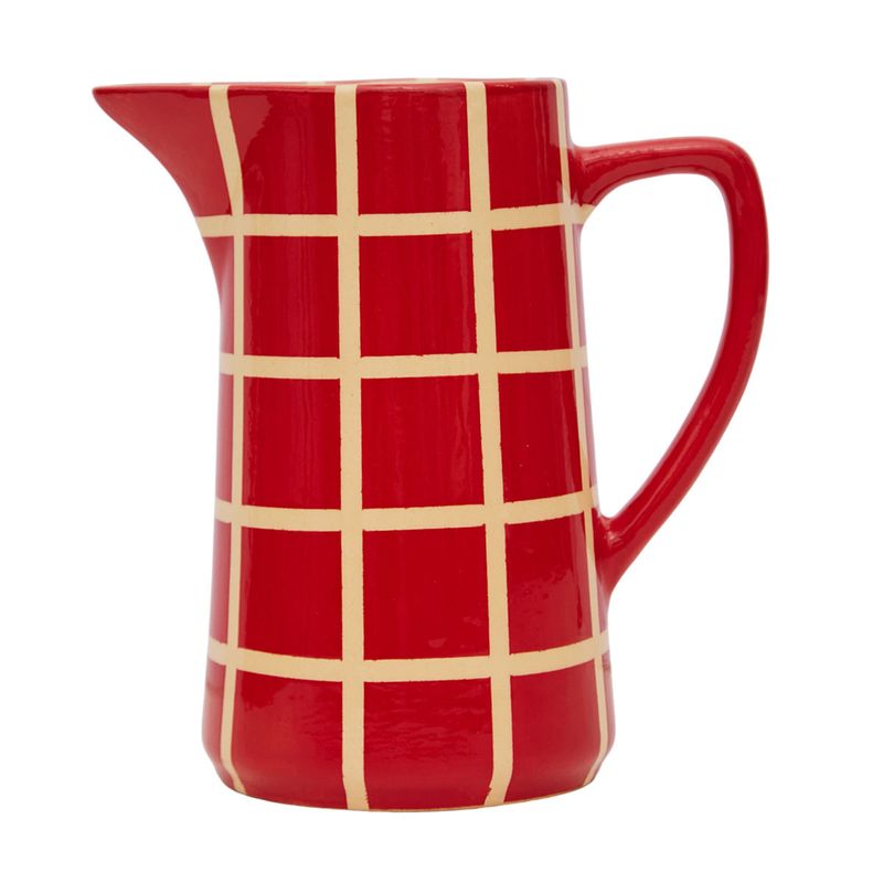 Aposte em um toque de charme e autenticidade na sua mesa com a Jarra Cerâmica Quadriculado Vermelho. Com design exclusivo em padrão quadriculado, ela traz um visual moderno com inspiração retrô, perfeito para quem deseja aliar funcionalidade e decoração.