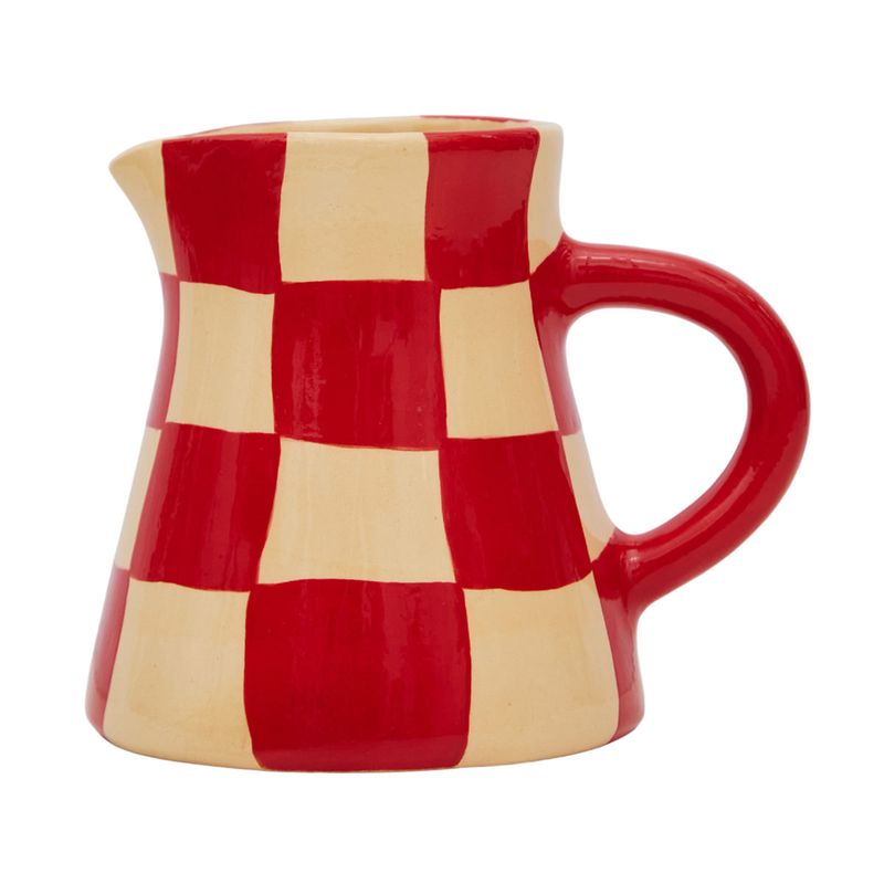 A Jarra Cerâmica 1,5L Xadrez Vermelho é a peça perfeita para transformar sua mesa em um ambiente cheio de estilo e personalidade. Seu design marcante com estampa xadrez em vermelho traz um ar retrô moderno, ideal para quem busca unir decoração e praticidade no dia a dia.