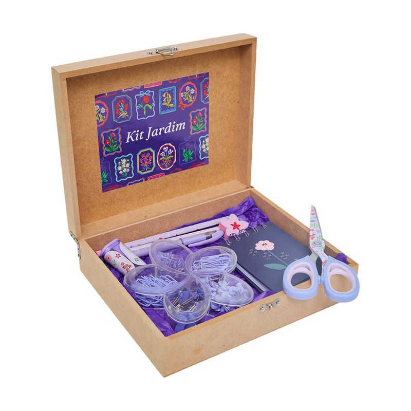 O Kit Jardim é aquele convite carinhoso para florescer a criatividade no dia a dia. Em uma caixa charmosa em madeira, você encontra uma seleção de itens delicados, coloridos e cheios de personalidade — todos inspirados na beleza suave dos jardins floridos, no estilo afetivo que a Papel Craft ama traduzir.