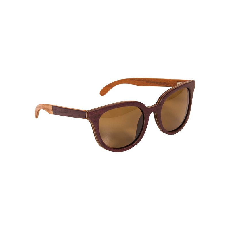 Óculos de sol de madeira Pau Ferro reutilizada, feito à mão. Modelo leve, com pegada jovial e design exclusivo Sunset Wood vai ser a melhor opção para compor os seus looks em dias ensolarados! O óculos Arapuã possui lente marrom polarizada com proteção UVA/UVB 400 de comprimento de 53mm, ponte de 19mm, frente de 150x52mm e haste 145mm. Acompanha flanela de limpeza e case dobrável sortida (cor da case pode variar e não vir conforme a da foto). Como é feito de madeira natural, as ranhuras podem variar. Possui 1 ano de garantia contra defeito de fabricação.