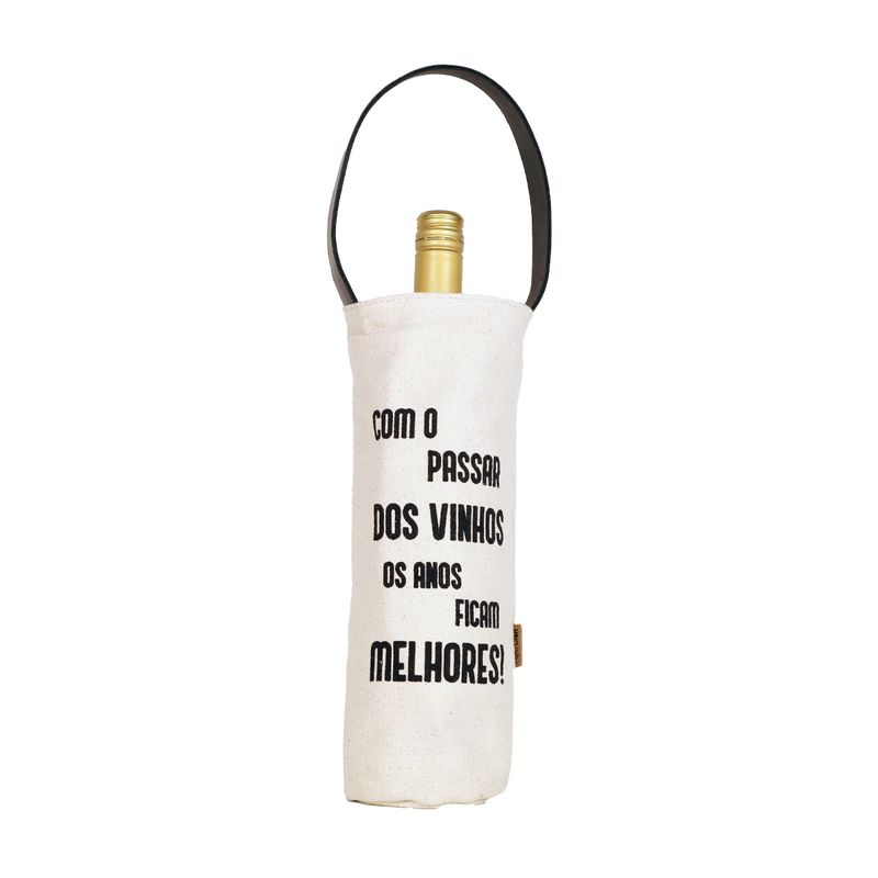 Porta-Vinho em Lona, com manta térmica para conservar a temperatura e alça de couro, é ideal para quem deseja presentear com bebidas ou usar no dia a dia para transportar com mais praticidade seu vinho para os encontros com amigos, familiares ou happy hour. Capacidade para uma garrafa. Dimensões: L: 10 cm x A: 29,5 cm