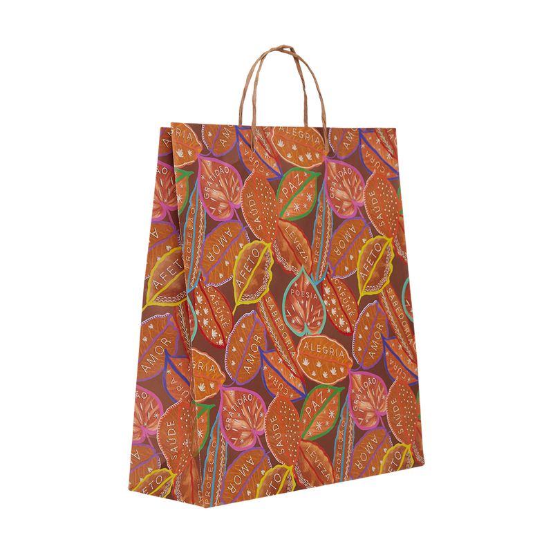 SACOLA DE PRESENTE G FOLHAS DESEJOS