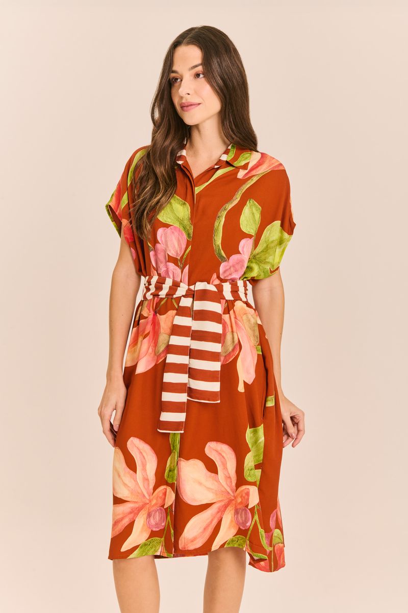 Leve, moderno e cheio de charme, esse vestido é confeccionado em 100% viscose, proporcionando um caimento fluido e confortável. Possui dois bolsos na frente, gola redonda, e aberturas laterais da barra, que permitem criar amarrações, adicionando estilo e movimento ao look. Composição: 100% Viscose