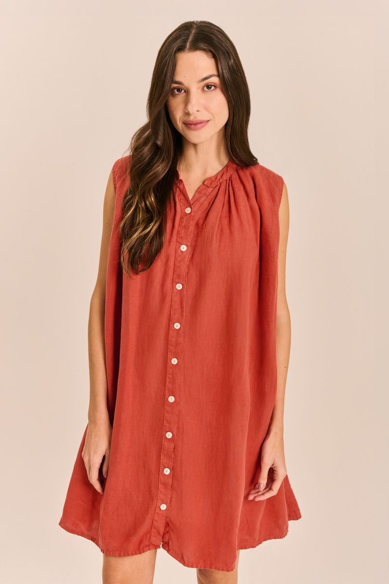 Vestido Linho Abertura Frontal GOIABA