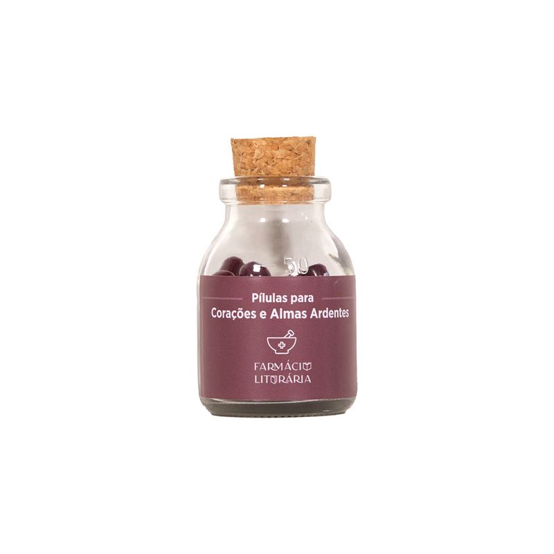 Esta é uma terapia alternativa para as dores e alegrias da alma. Uma farmácia particular com citações, poemas e trechos extraídos de novos e célebres autores como proposta de terapia para a saúde da mente e do espírito. As cápsulas coloridas em frascos com inspiradas frases são um presente feito de arte, cura e cultura que pode ser receitado “sem moderação”.